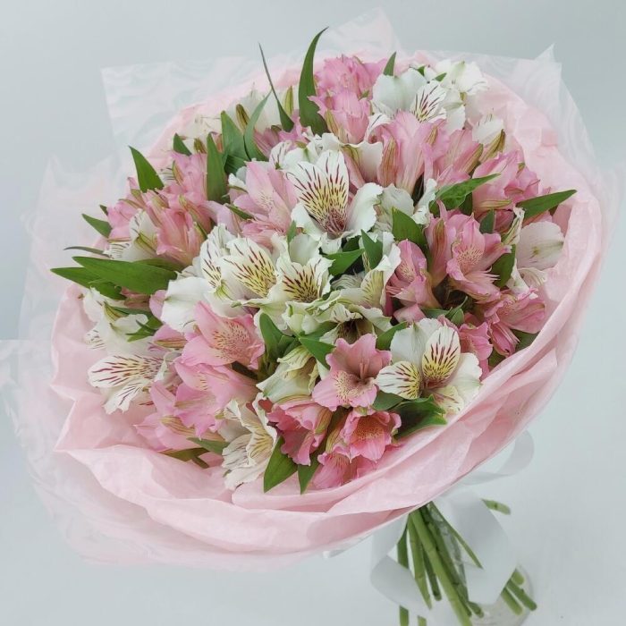 Нежные и стойкие альстромерии в лаконичнгм монобукете. Такой букет всегда уместен и подойдёт для любого повода: День Рождения, именины, годовщина свадьбы, рождение ребенка, 8 марта, День Святого Валентина, выпускной и т.д. Можно вручить маме, сестре, подруге, коллеге, учителю, любимой.