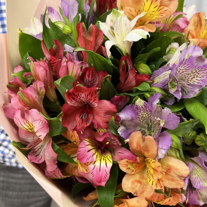 Букет из 15 разноцветных альстромерий. Букет 313 ALMOND ROSES
