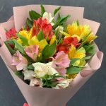 Букет из 9 разноцветных альстромерий в стильной упаковке