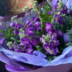 Букет из 11 фиолетовых маттиол и фисташки в стильной упаковке “Вайолет”