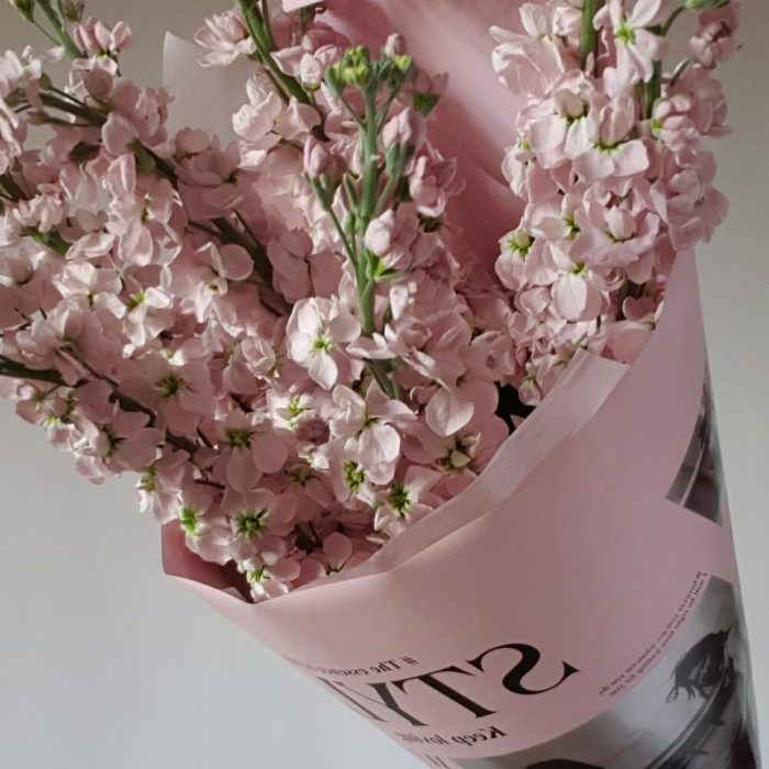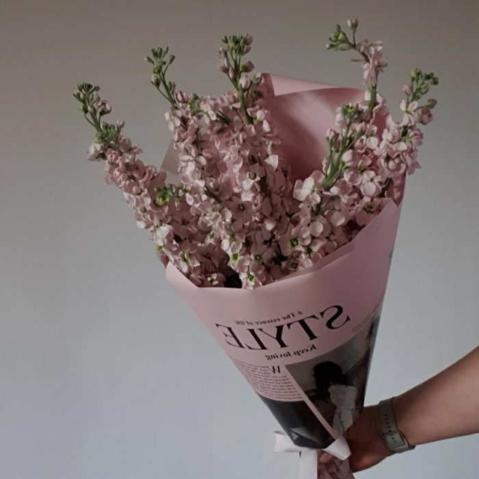 Упаковка – 2 шт.Лента атласная – 1 шт.Маттиола розовая – 9 шт.