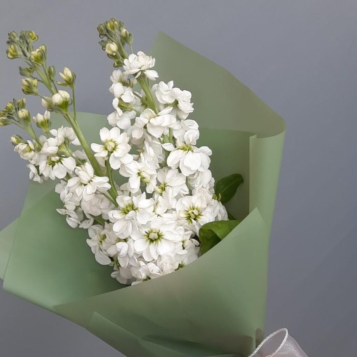 Упаковка дизайнерская – 2 шт.Лента органза – 2 шт.Маттиола белая – 3 шт.