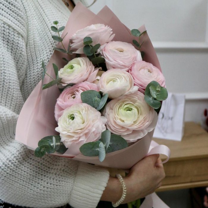 раункулюс ханой – 9 шт.эвкалипт 50 – 8 шт.Упаковка дизайнерская – 1 шт.