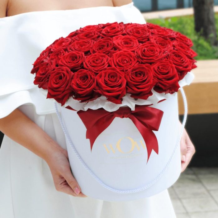 23 красные розы в шляпной коробке