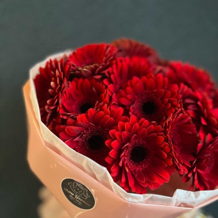 Гербера – 25 шт.декоративная упаковка – 1 шт.Атласная лента – 1 шт.