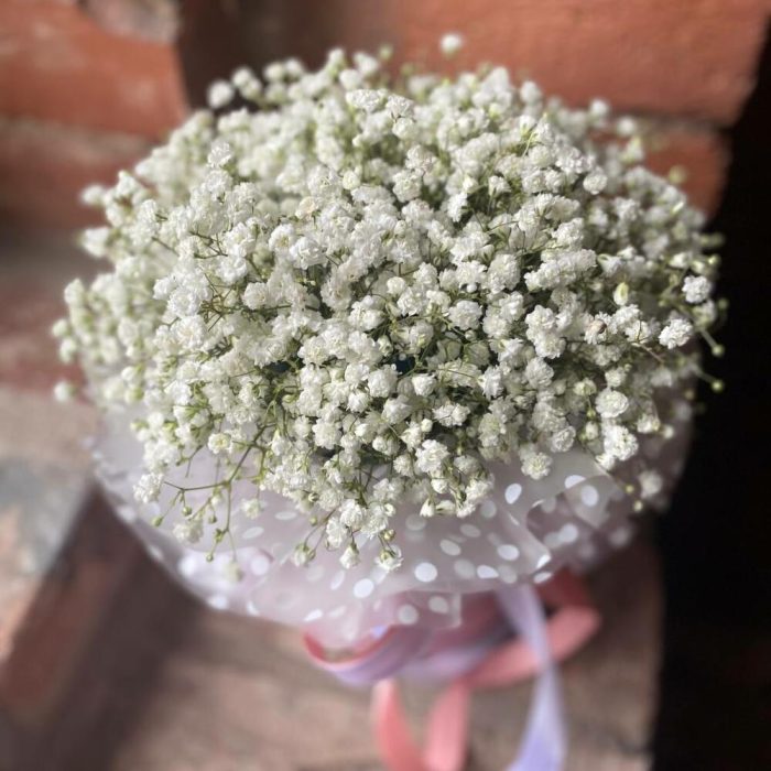 Букет из гипсофилы в шляпной коробке “Канделина”