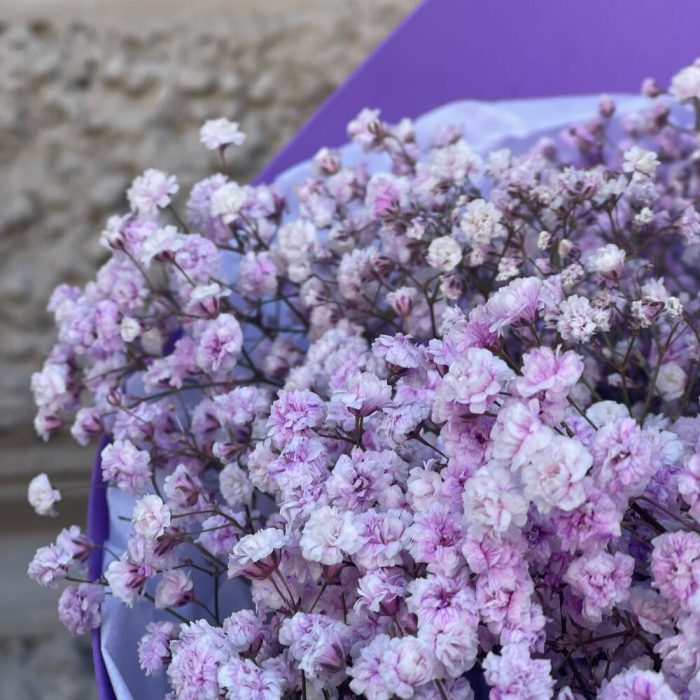 Гипсофила – 13 шт.Лента – 3 шт.Тишью – 3 шт.Упаковка дизайнерская – 1 шт.