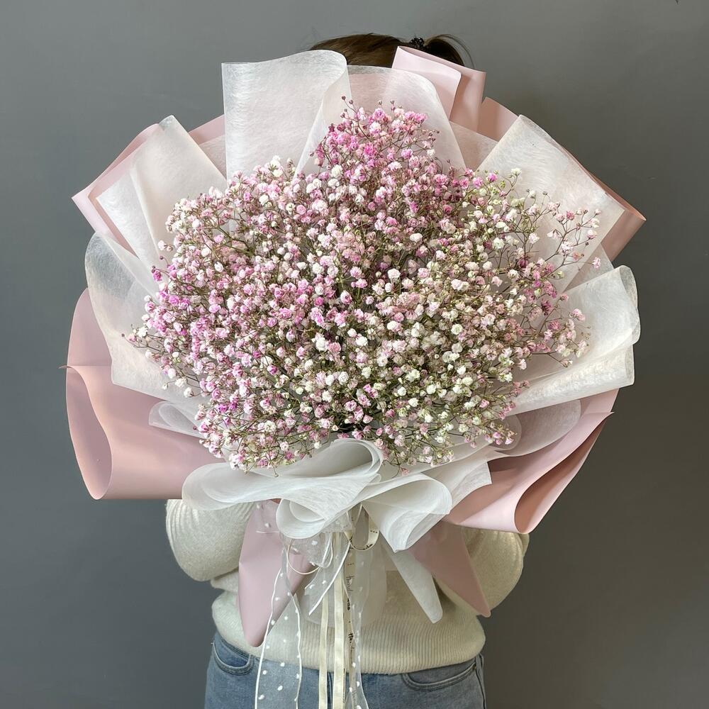 Букет с воздушной гипсофилой «Розовое облачко»