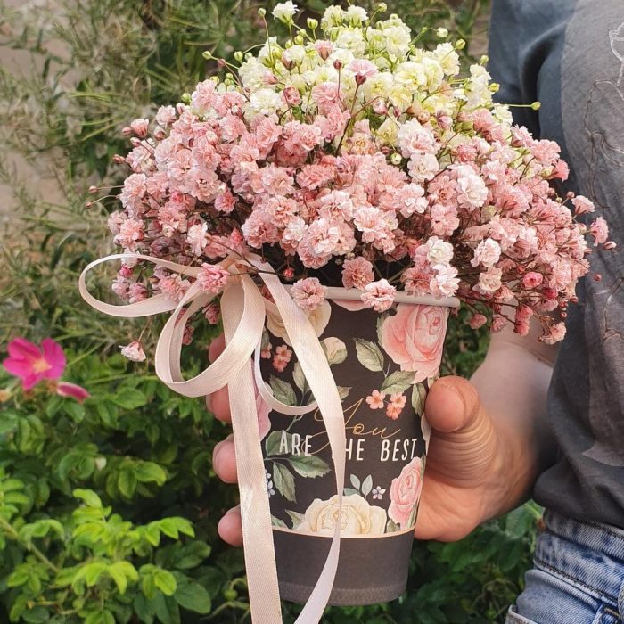 Гипсофила – 2 шт.Лента атласная – 1 шт.Губка флористическая – 1 шт.стакан кофейный – 1 шт.