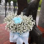 “Сиреневый туман” – композиция из гипсофилы в шляпной коробке