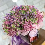 “Сиреневый туман” – композиция из гипсофилы в шляпной коробке