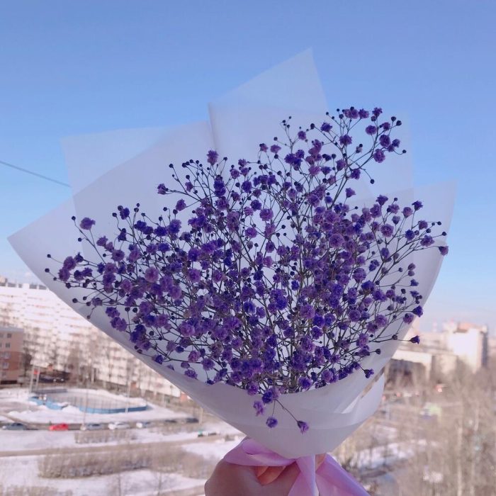 Мини букет из фиолетовой гипсофилы