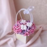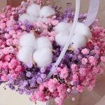 “Сиреневый туман” – композиция из гипсофилы в шляпной коробке