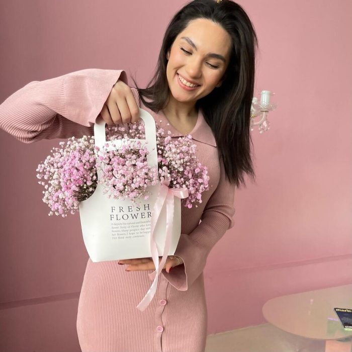 Стойкая гипсофила в крафтовом пакете – отличный подарок в день рождения!