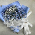 Подарочный набор – Букетик гипсофилы (размеры: 25 см высота, 20 см ширина) с мягкой игрушкой Lapkin. Доставляется в крафтовом пакете (высота 25 см, ширина 22 см, глубина 12 см).