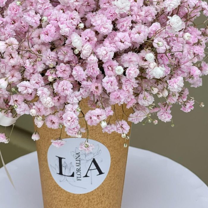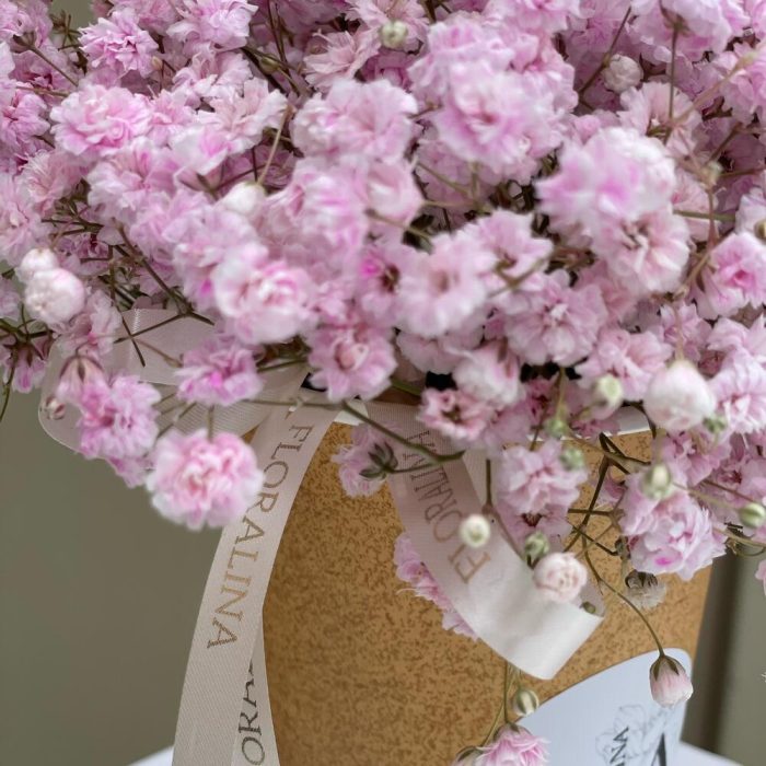 Букет 16: розовая гипсофила в упаковке