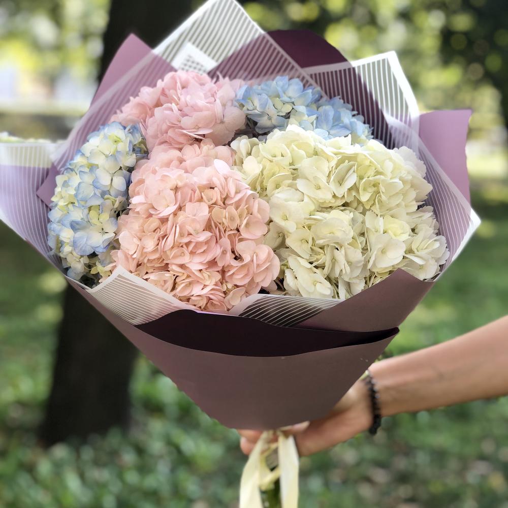 Крафт упаковка – 3 шт.Гортензия микс – 5 шт.