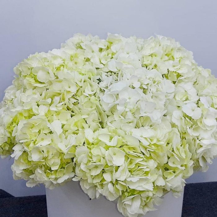 белые гортензии – 15 шт.коробка шляпная большая белая – 1 шт.
