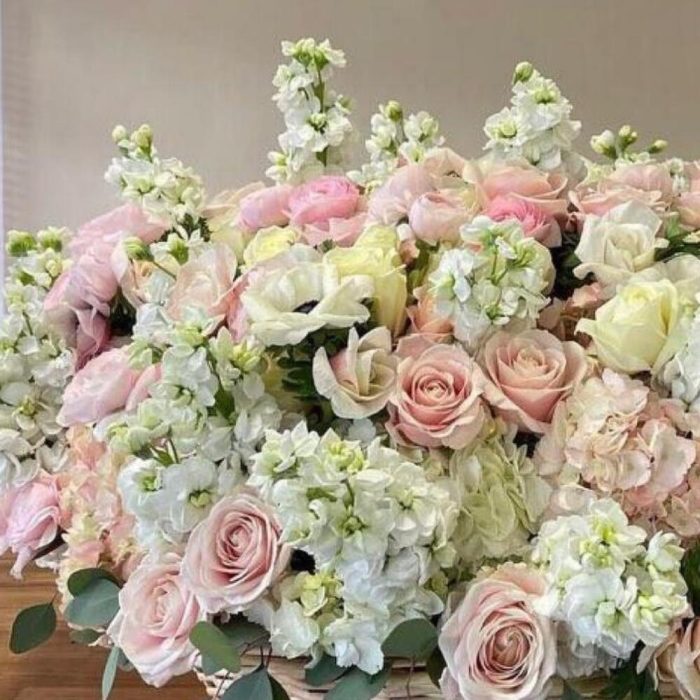 “Эвкалиптическая роскошь” гортензия и пионовидная кустовая роза