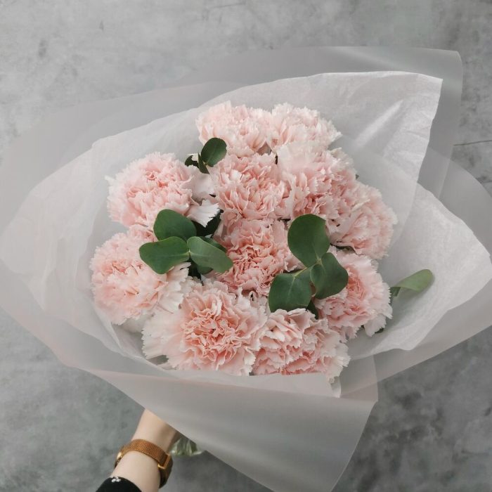 Гвоздика – 11 шт.Эвкалипт – 3 шт.Упаковка дизайнерская – 2 шт.