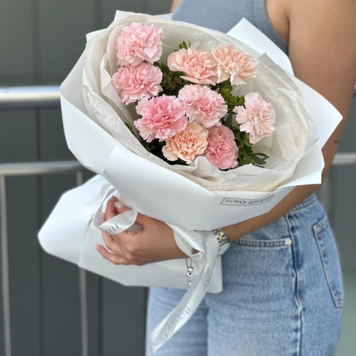 Стильный букет из диантусов в оформлении!