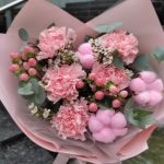 Букет из гвоздики, хлопка и гиперикума