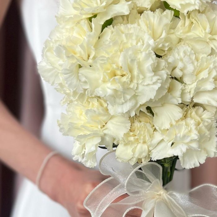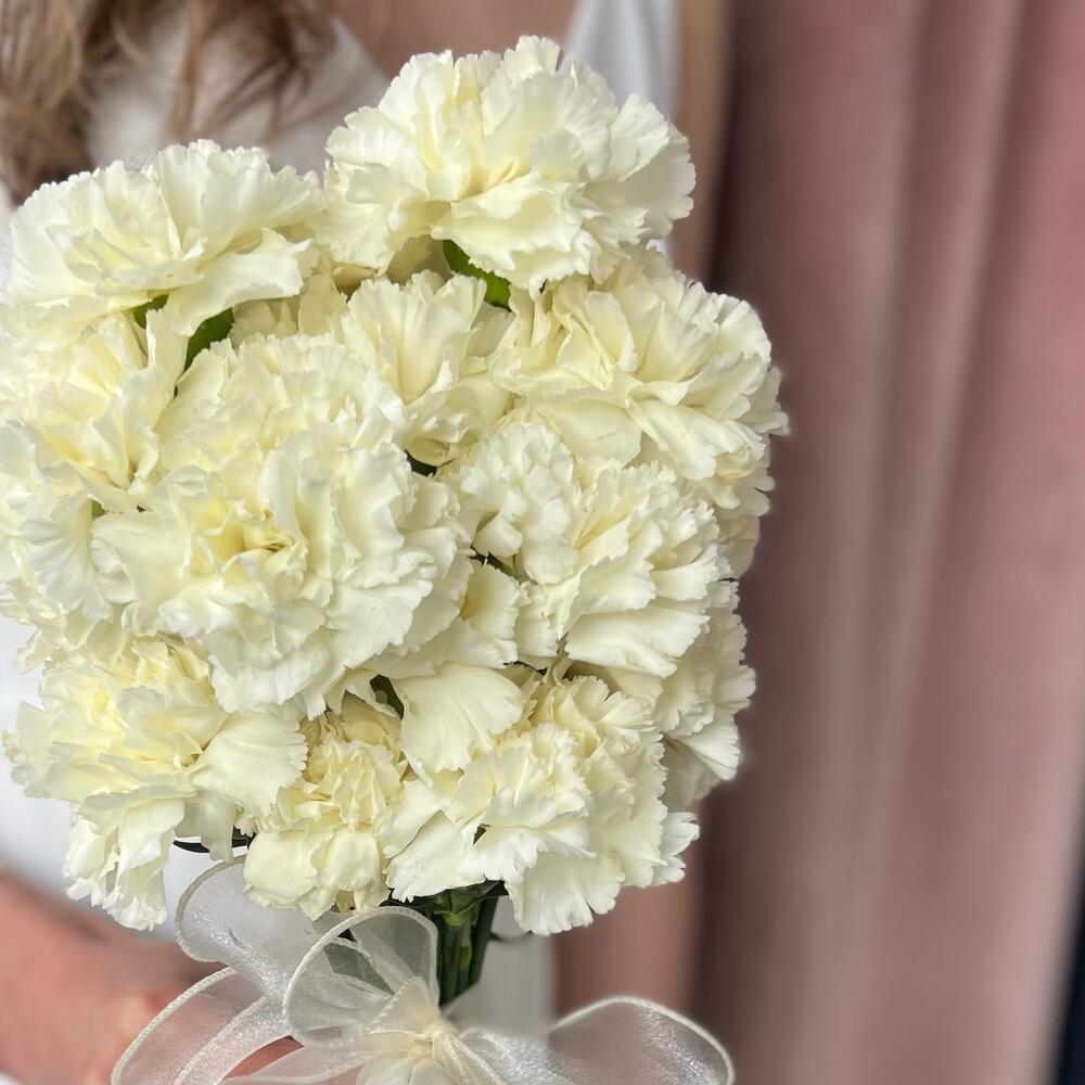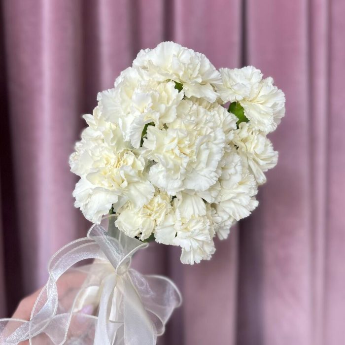 Диантус – 15 шт.Органза – 1 шт.Атласная лента – 2 шт.