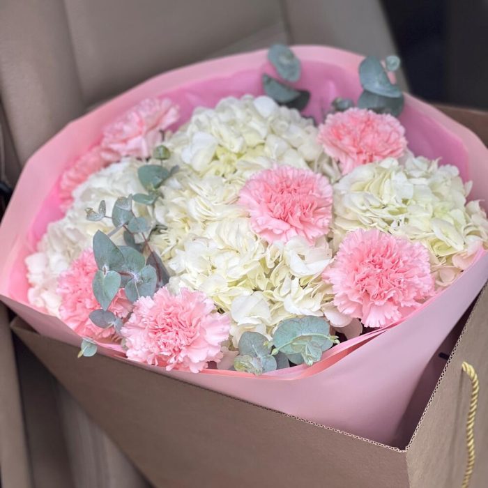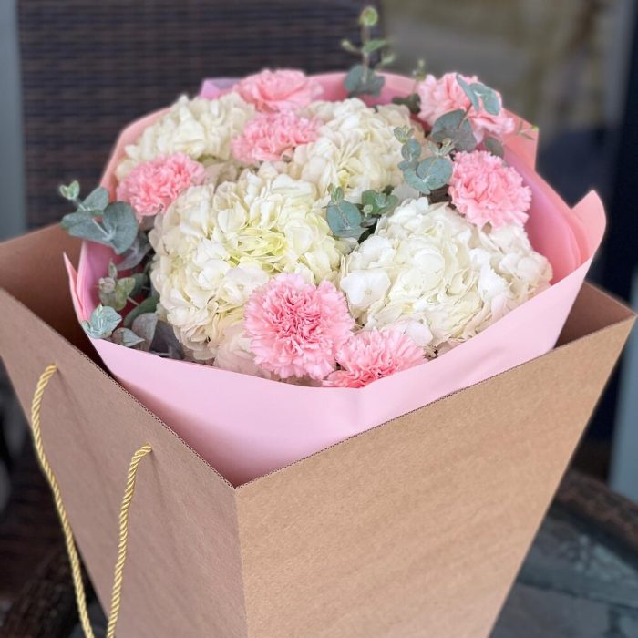 Букет с гортензией и ваксфлауэром