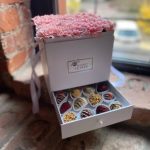 “Атлас☁️” – цветочная композиция с зефиром в деревянном ящике
