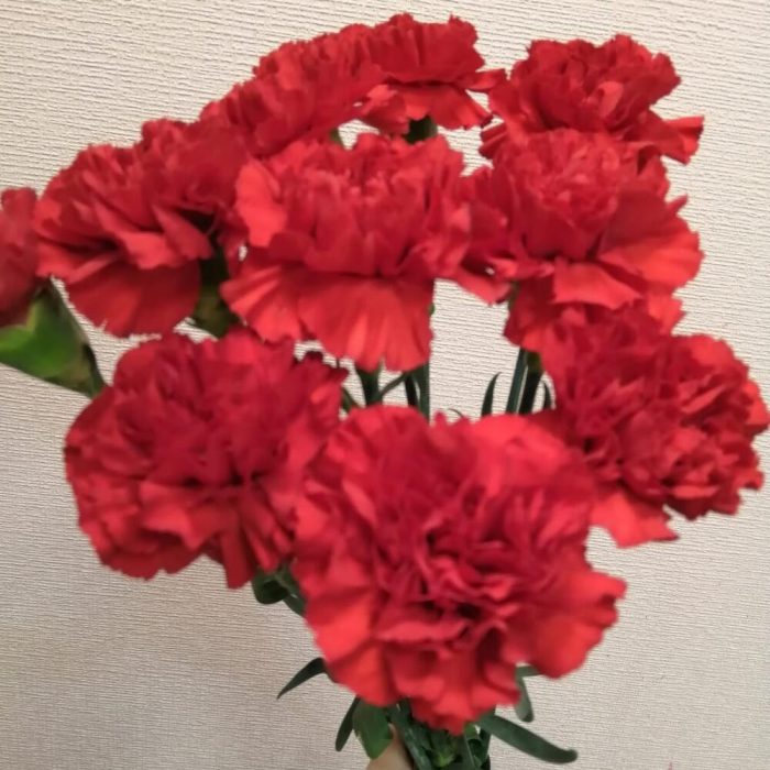 Лента атласная – 1 шт.Гвоздика красная – 10 шт.