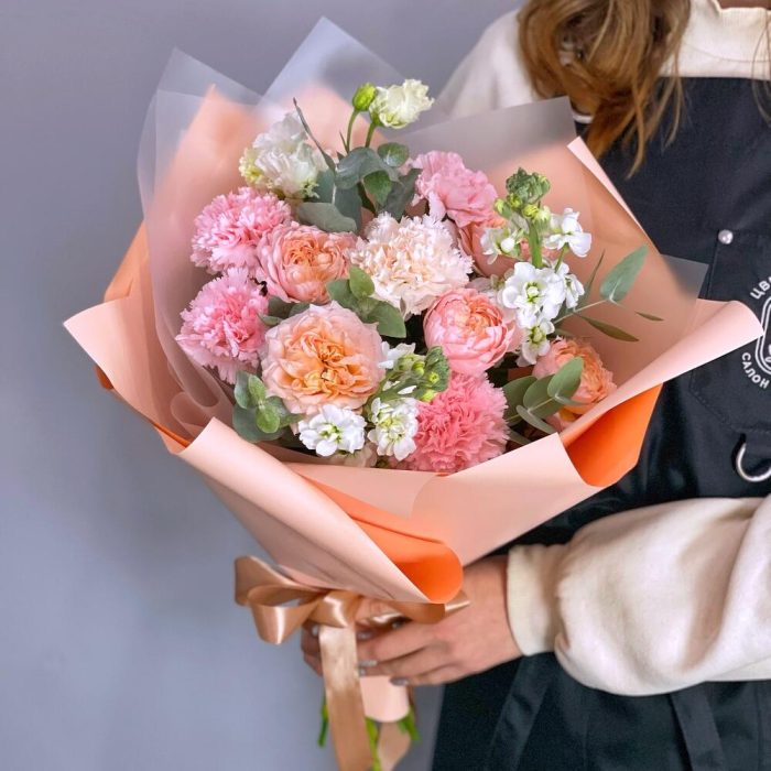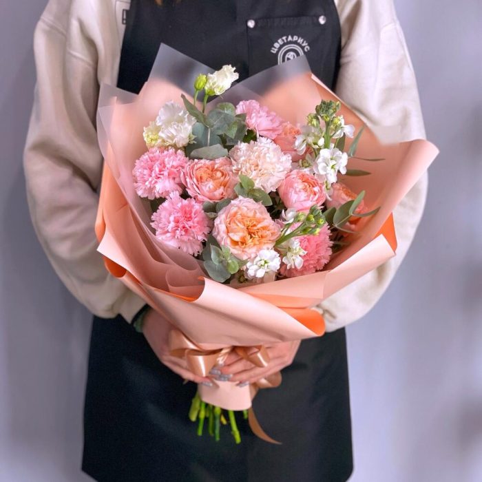 Персиковый букет в дизайнерском оформлении