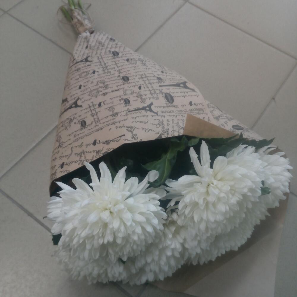 Крафт упаковка – 1 шт.Хризантема одноголовая белая – 7 шт.