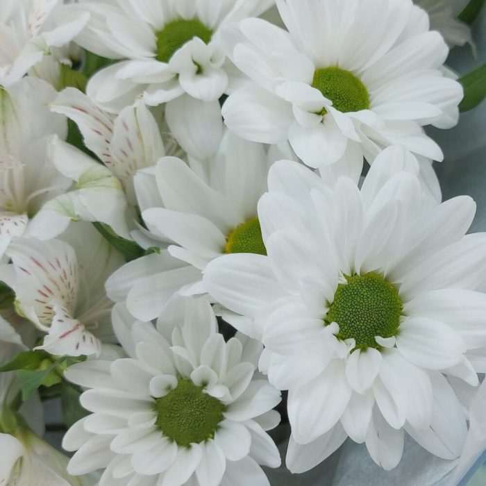 Хризантема Кустовая Бакарди белая – 3 шт.Альстромерия – 4 шт.Упаковка дизайнерская – 1 шт.
