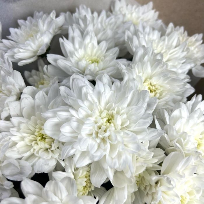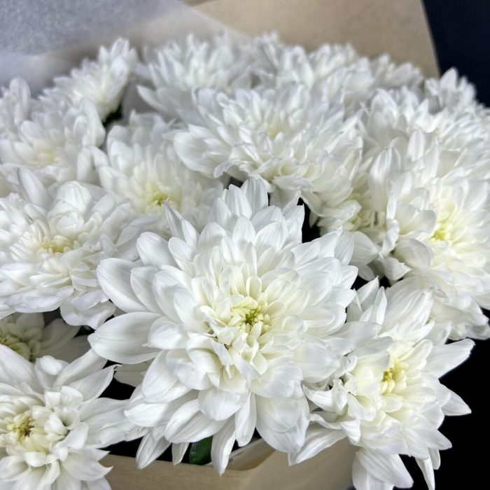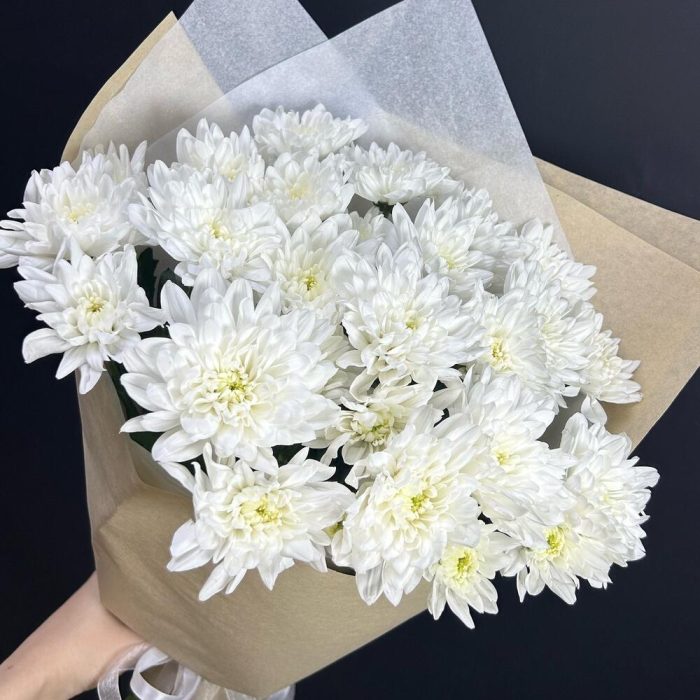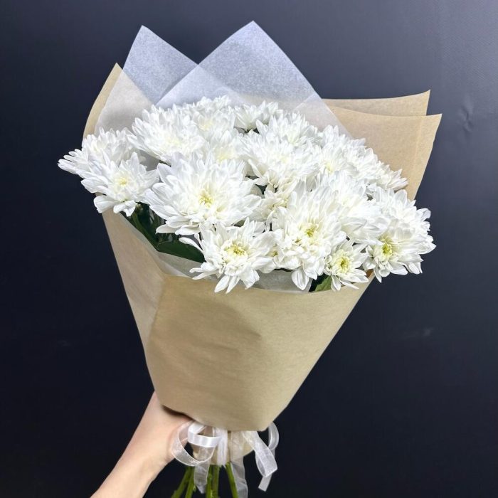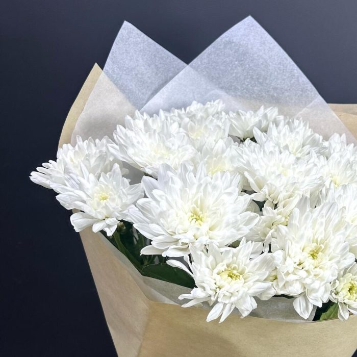 белая кустовая хризантема – 5 шт.Упаковка крафт дизайнерский – 1 шт.