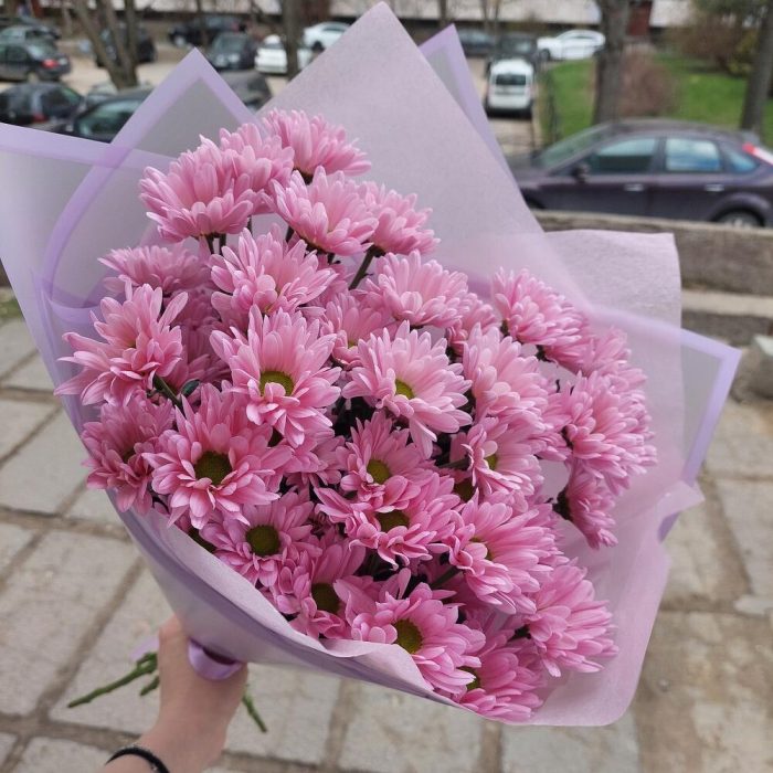 Хризантема – 5 шт.Упаковка дизайнерская – 1 шт.Лента атласная – 1 шт.