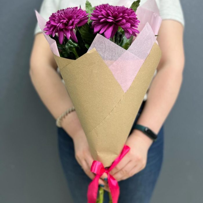 Хризантема одноголовая – 3 шт.Крафт упаковка – 1 шт.