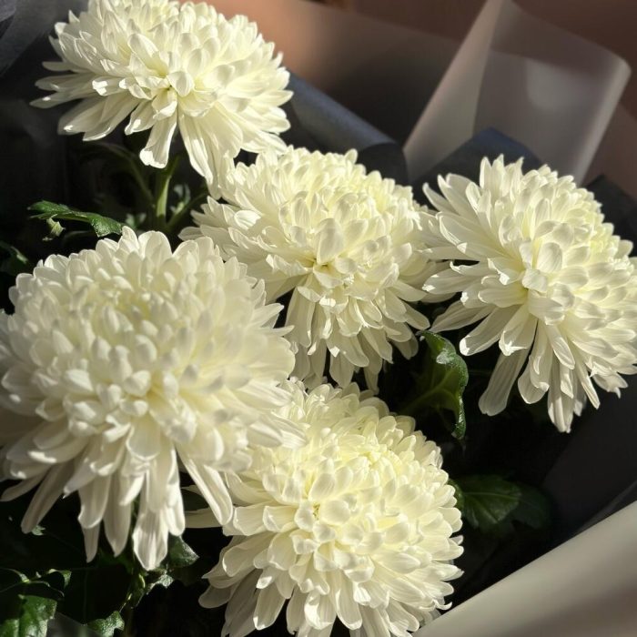Лента атласная – 2 шт.Тишью – 2 шт.Хризантема Антонов – 5 шт.Пленка матовая – 2 шт.