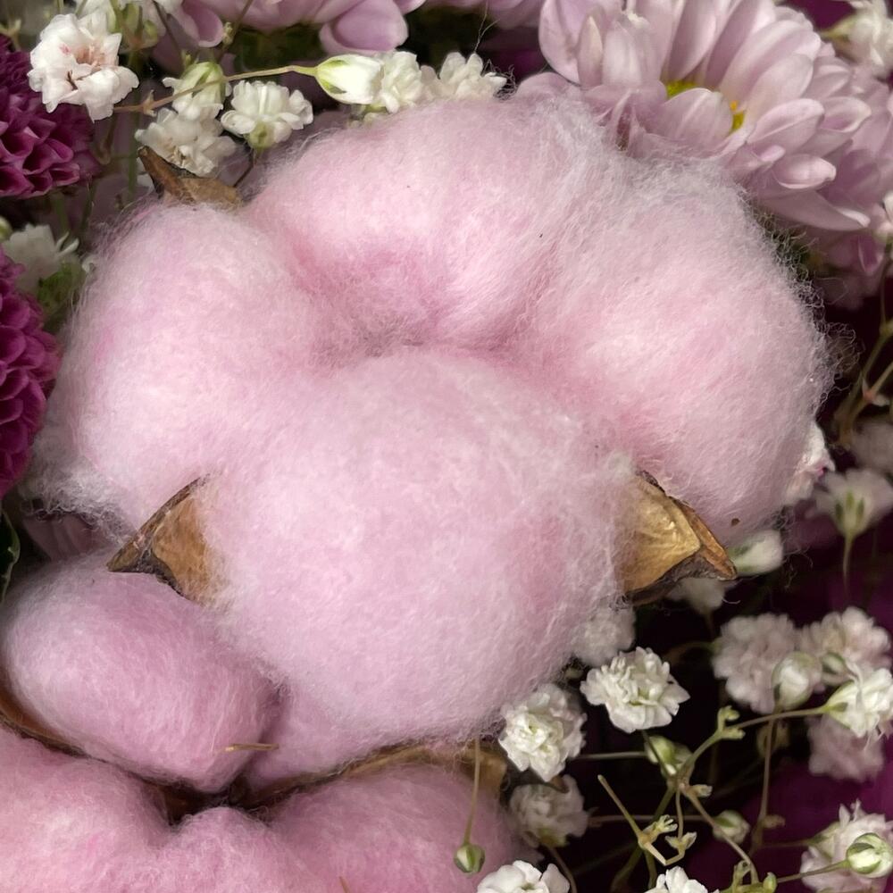 Гипсофила – 2 шт.Хлопок – 5 шт.Хризантема Сантини – 4 шт.Лента атласная – 1 шт.Упаковка дизайнерская – 1 шт.Открыточка с вашими пожеланиями – 1 шт.