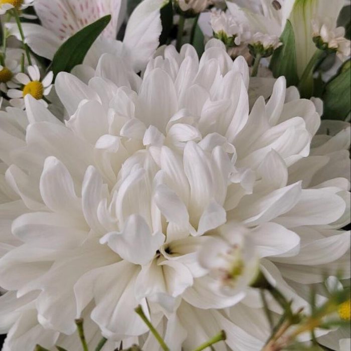 Букет с одиночной хризантемой и ромашками