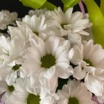 Хризантема – 4 шт. Лента атласная – 2 шт. Оазис флористический – 1 шт. Слюда упаковка – 2 шт. крафт пакет с ручками – 1 шт.