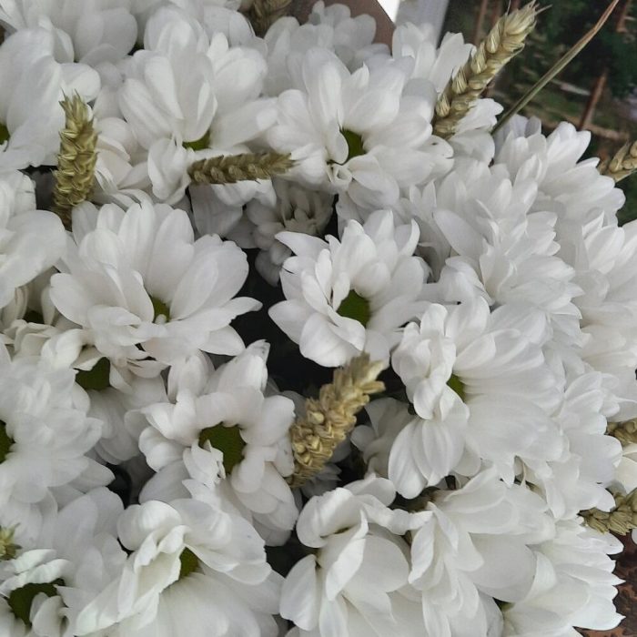 Хризантема кустовая – 7 шт.Колоски пшеницы – 16 шт.Упаковка дизайнерская – 1 шт.