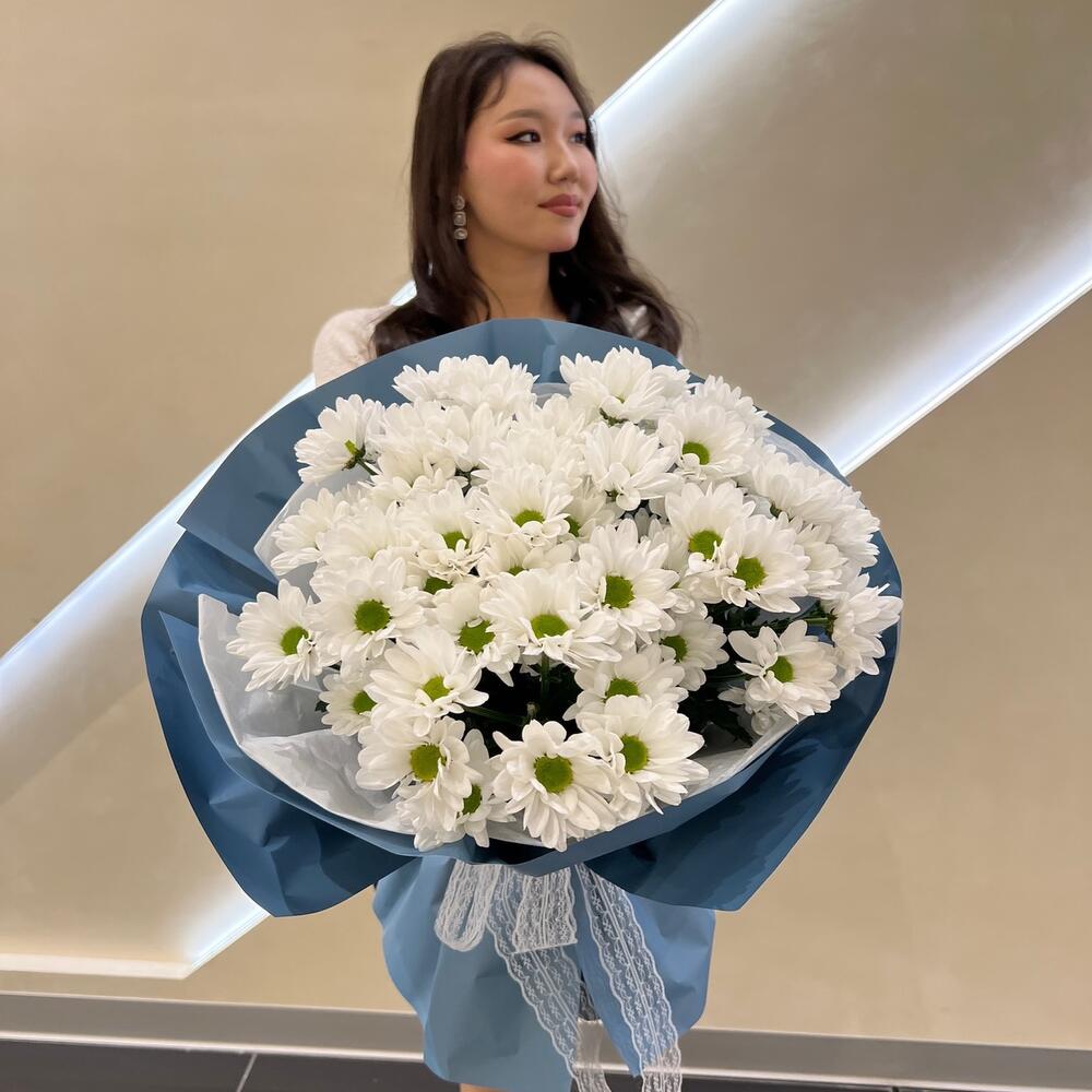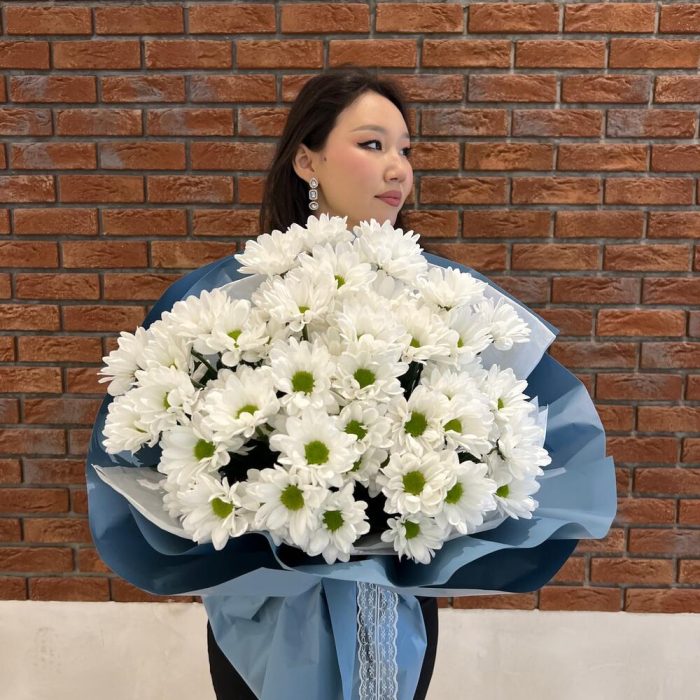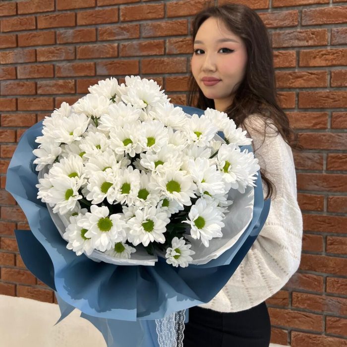 15 белых кустовых хризантем