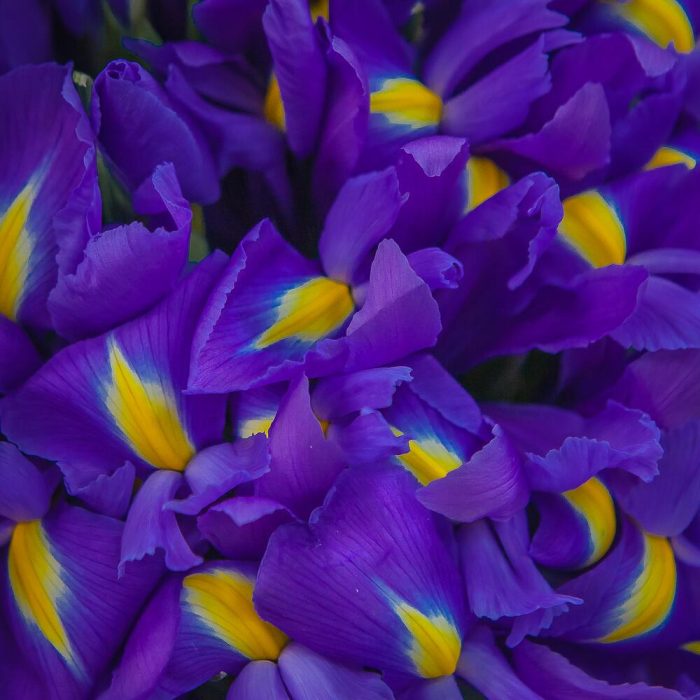 ирисы синие – 19 шт.Упаковка крафт – 1 шт.Атласная лента – 1 шт.