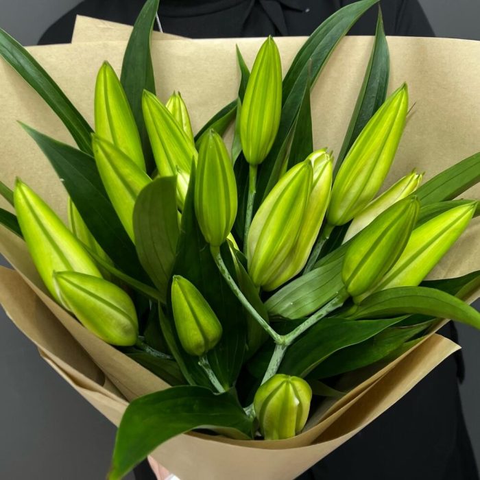 Лента атласная – 1 шт.Лилия белая – 5 шт.крафт натуральный – 1 шт.