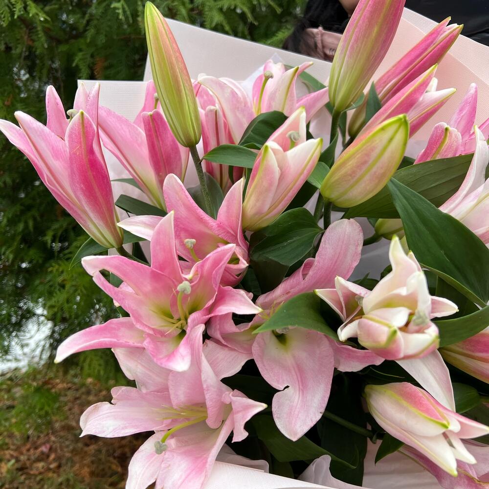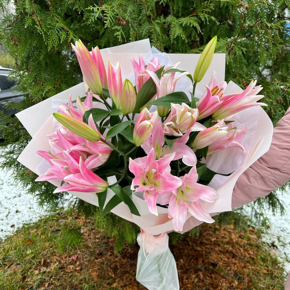 Лилия розовая – 5 шт.Тишью – 2 шт.структурированны фаомиран – 3 шт.