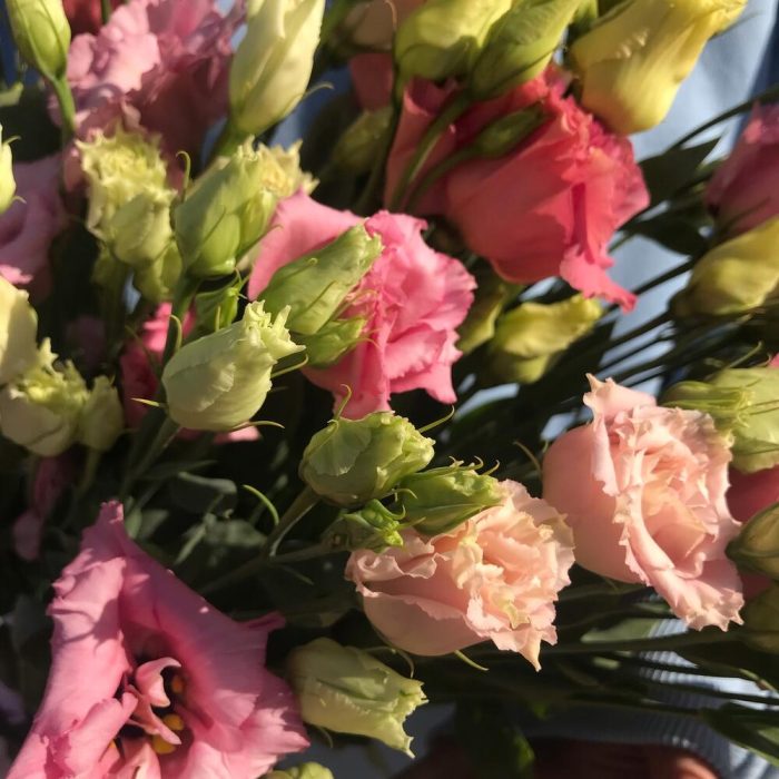 Лента атласная – 1 шт.Лизиантус розовый – 9 шт.комплимент от polyanka – 1 шт.