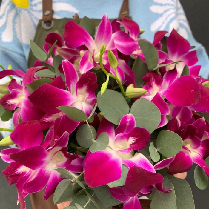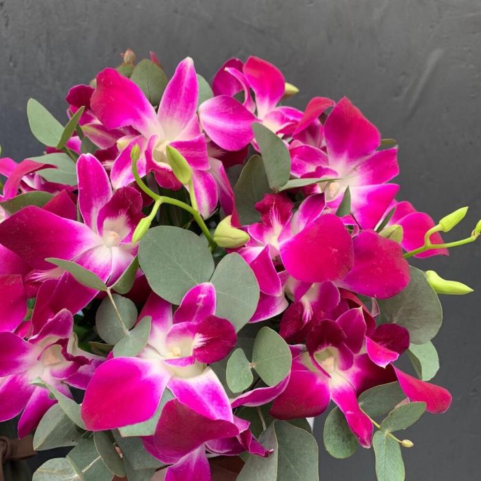 Дендробиум – 31 шт.удлинитель для орхидеи – 17 шт.Эвкалипт – 14 шт.Шляпная коробка с лентами – 1 шт.Оазис флористический – 127 шт.