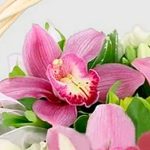 Нежная, трогательная композиция из орхидей цимбидиум и белоснежных фрезий в корзинке. Ансамбль дополнен зеленью и декоративными элементами из лент и бусин. Для самых очаровательных принцесс! Аромат фрезий настолько притягателен, что получательниц не захочет выпускать такую корзинку из рук 🙂 Подарите кучу позитивных эмоций дорогому человеку!