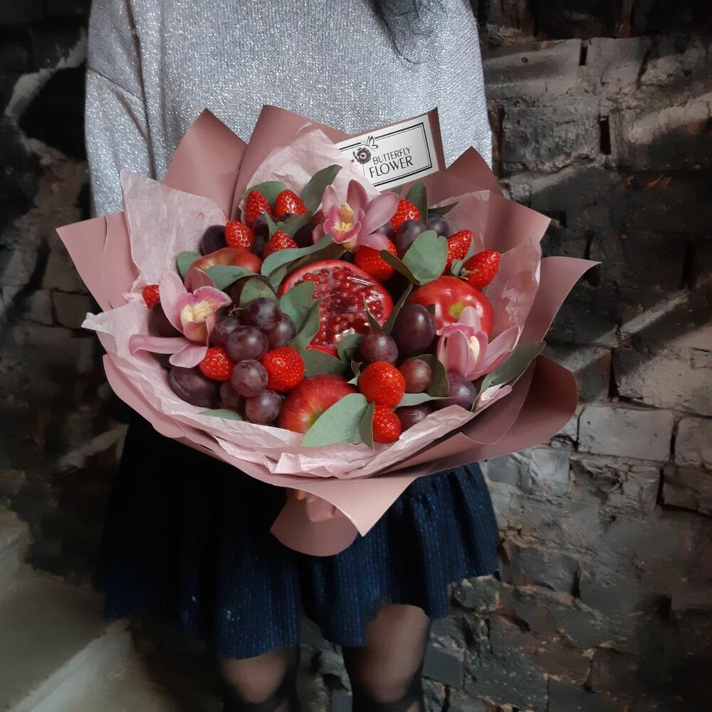 Съедобный букет из орхидей, фруктов и ягод "Сливовица"