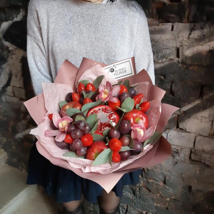 Съедобный букет из орхидей, фруктов и ягод “Сливовица”